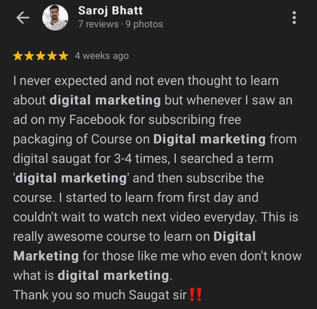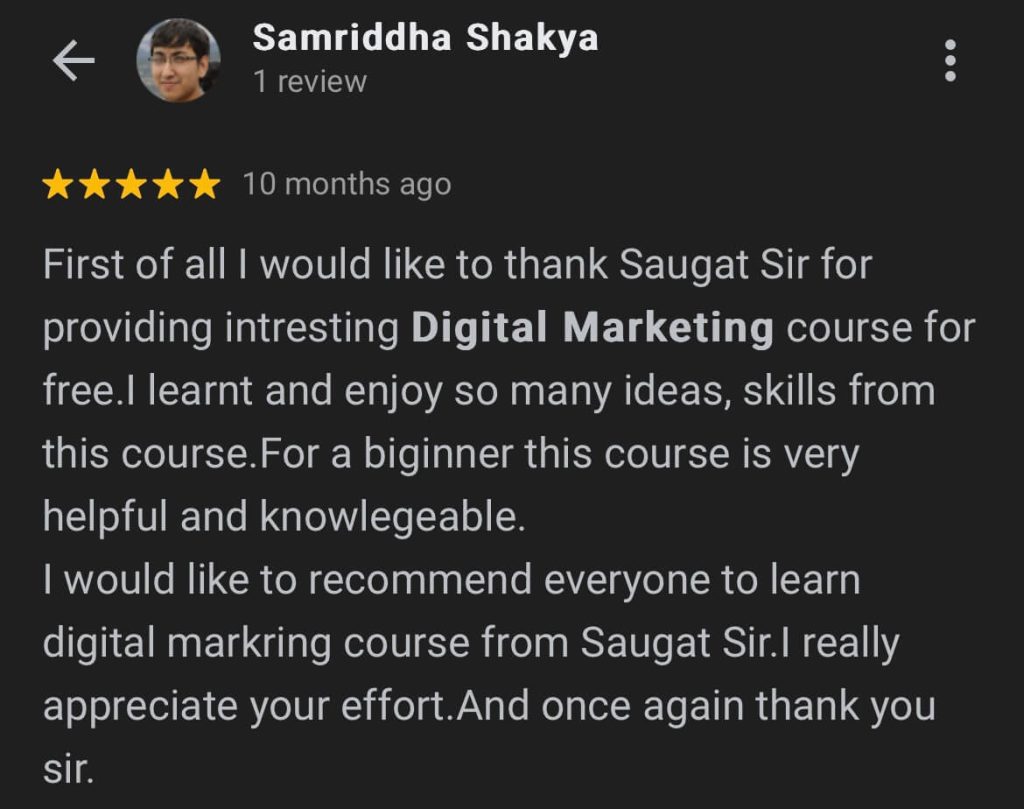 Hey. I’m Saugat Basnet, also known as Digital Saugat. For the past 9 years, I’ve been working as a Digital Marketing Consultant and coaching people to start and grow in digital marketing.
